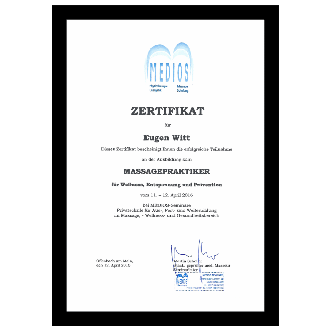 Gepostet auf Maria LoesingTrustindex überprüft, ob die Originalquelle der Bewertung Google ist. Als Maßnahme der betrieblichen Gesundheitsförderung kommt Eugen einmal pro Woche zu uns und die Mitarbeiter, die möchten, können bei ihm eine Massage in Anspruch nehmen. Eugen ist sehr talentiert und kann sogar tiefsitzende und manifestierte Verspannungen nachhaltig lösen. Unseren Rücken geht es trotz des vielen arbeitsbedingten Sitzens und des schweren Hebens immer besser und ein jeder freut sich auf den Massageabend.Gepostet auf Irene HeckendorfTrustindex überprüft, ob die Originalquelle der Bewertung Google ist. Hallo zusammen, Ich hatte schon länger mit Rückenschmerzen zu kämpfen, der Arm schlief ein und es zog ein Schmerz bis ins rechte Bein. Mir wurde dieser Masseur empfohlen und ich muss wirklich sagen, nachdem der Massage Muskelkater abgeklungen ist ,ging es meinem Rücken , Hand und Bein wieder sehr viel besser, auf jeden Fall komme ich wieder, sobald ich wieder leichte Verspannungen merke🙌 Vielen Dank nochmal für die kompetente Hilfe und den kurzfristigen Termin .Gepostet auf rico lopez gomezTrustindex überprüft, ob die Originalquelle der Bewertung Google ist. Der beste ❤️Gepostet auf angelo naumowTrustindex überprüft, ob die Originalquelle der Bewertung Google ist. Habe schnell ein Termin bekommen netter Empfang Nach langer Zeit Rückenschmerzen wurde es nur schon nach den ersten Besuch viel besser würde es jedem weiter empfehlen und da immer wieder hin zu gehenGepostet auf Waldemar RutzTrustindex überprüft, ob die Originalquelle der Bewertung Google ist. Nach dieser Massage, fühlt man sich wie neugeboren. Wer seine Massage sehr dolle will, also so richtig dolle, der meldet sich bei Herrn Witt. Lohnt sich 100%Gepostet auf Sven KürschnerTrustindex überprüft, ob die Originalquelle der Bewertung Google ist. Sehr gut 👍 man spürt sofort das der Eugen Witt die richtigen Punkte effektiv trifft. Werde wiederholt hingehen.Gepostet auf Valeri FrizlerTrustindex überprüft, ob die Originalquelle der Bewertung Google ist. Als professioneller Sportler bin ich seit Jahren schon Kunde und es gibt keinen besseren Masseur als Eugen. Seine Massagen lösen Verspannungen und Verklebungen im Muskel. Absolute Empfehlung 👍🏻